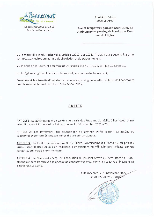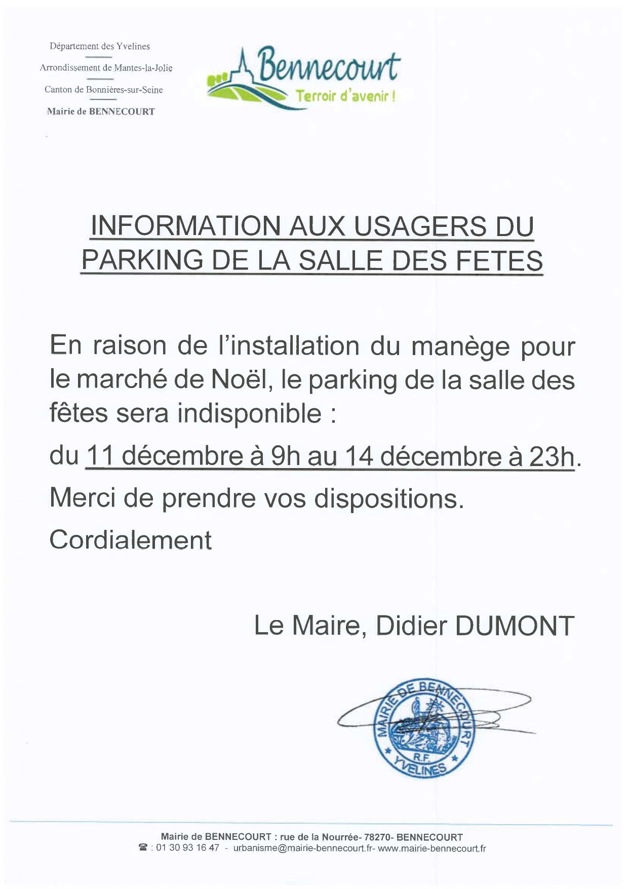 Le parking devant la maternelle sera donc fermé du jeudi 11 au dimanche 14 décembre