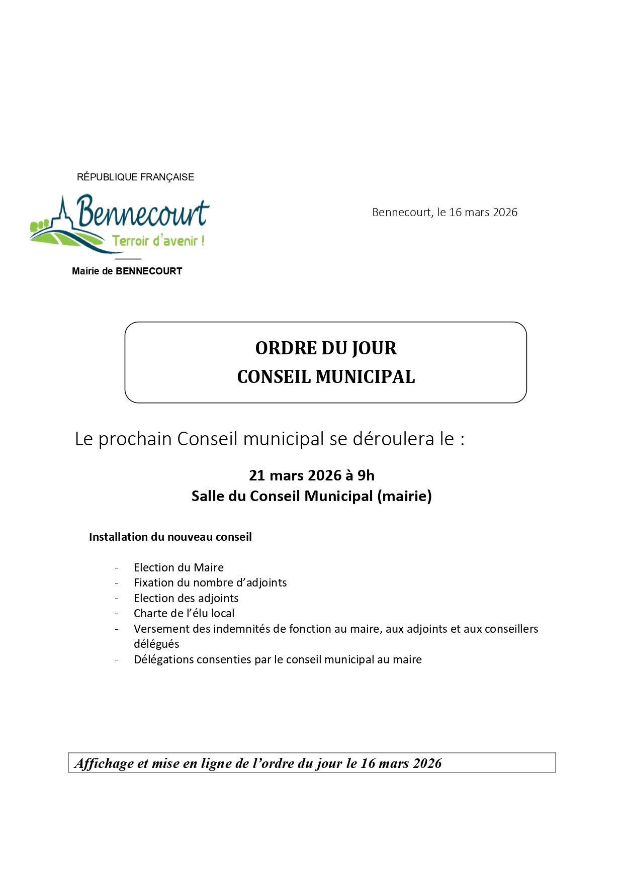 Conseil municipal du 21 mars 2026