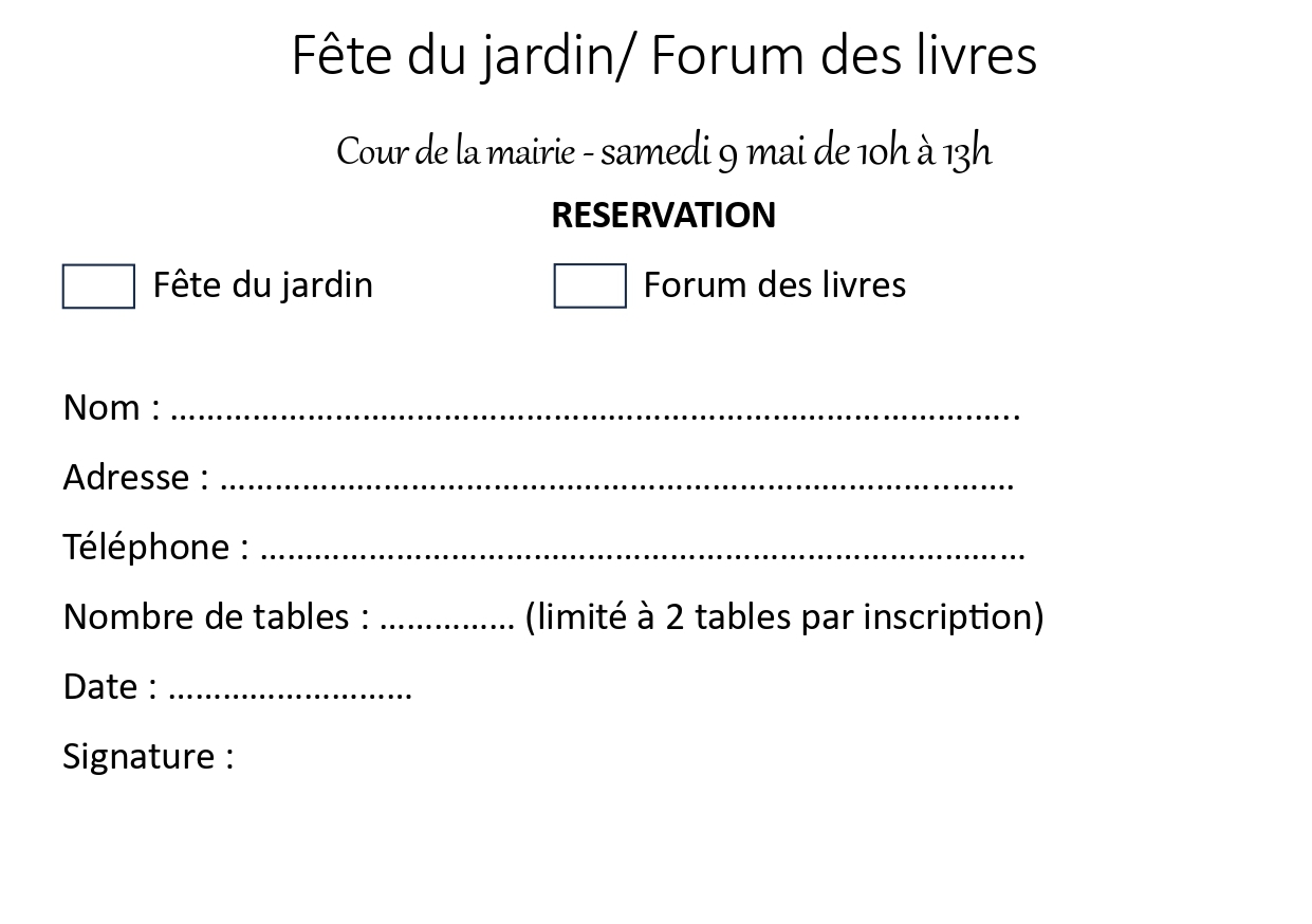 Inscription recommandée pour obtenir une table d'exposition. Bulletin d'inscription à rendre en mairie avant le 6 mai 2026.